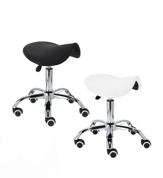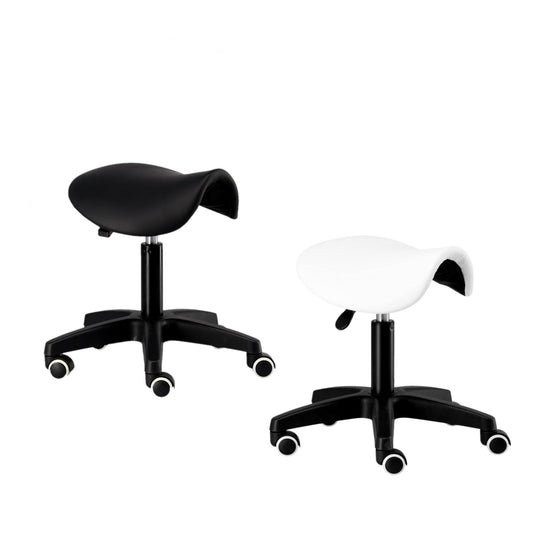 Taburet cosmetic pentru coafor | scaun tip șa | Alb/Negru Adaugă eleganță și funcționalitate salonului...