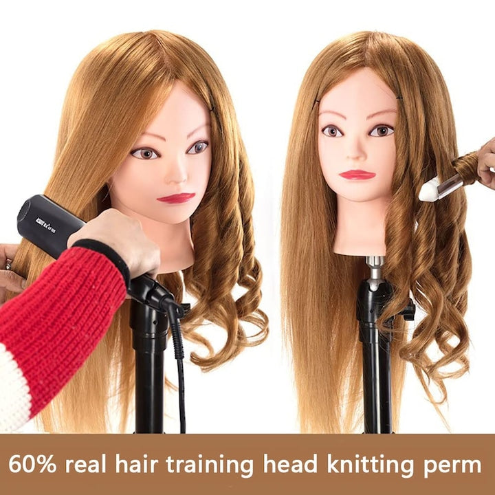 Capul de practică cu păr natural 100% este un partener indispensabil pentru perfecționarea abilităților în coafură. Având o lungime de 55-60 cm și o nuanță atrăgătoare de blond auriu, oferă o experiență autentică și realistă pentru diverse tehnici, cum ar fi tunsul, împletitul și coafarea. Părul natural de calitate premium permite stilizarea exact ca pe un client real, acceptând produse de coafare și instrumente de styling, inclusiv placa de îndreptat sau ondulatorul.