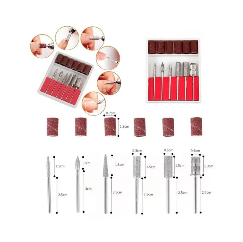 Accesorii: Include 6 capete de șlefuire interschimbabile, care acoperă toate nevoile de finisare, polizare și modelare a unghiilor.