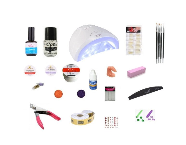 Kit unghii false : lampa uv, pensule, geluri, tipsuri -START