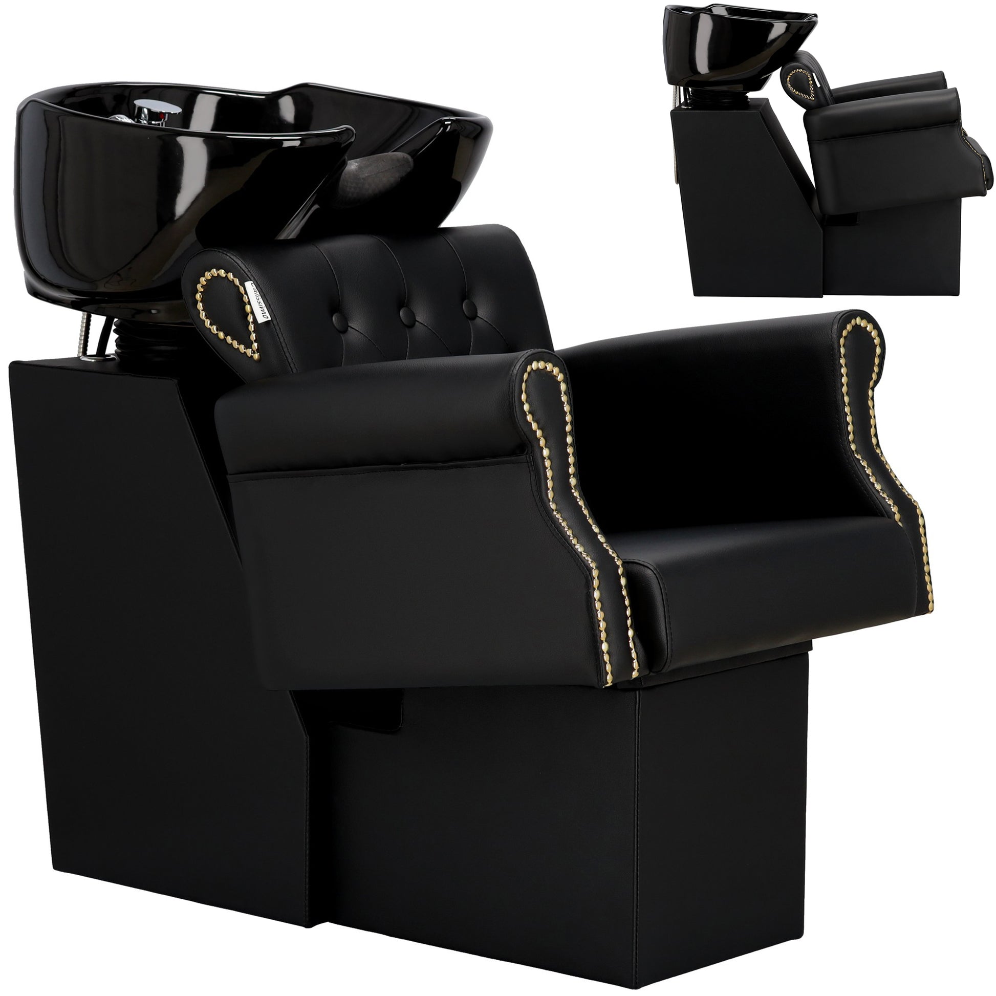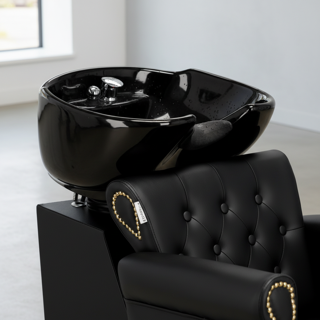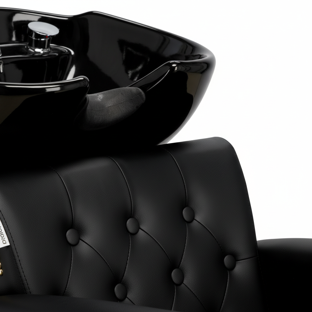 Bol ceramic mobil: Cada se înclină pentru a se adapta înălțimii clientului, asigurând o poziție corectă a gâtului în timpul spălării.