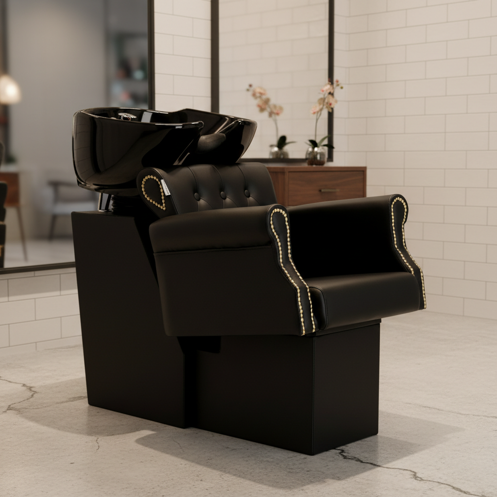 Modelul Kiva este o soluție practică pentru saloanele de coafură și frizerii care caută un post de spălare rezistent la trafic intens. Designul pune accent pe durabilitatea materialelor și pe ușurința în utilizare pentru tehnician.