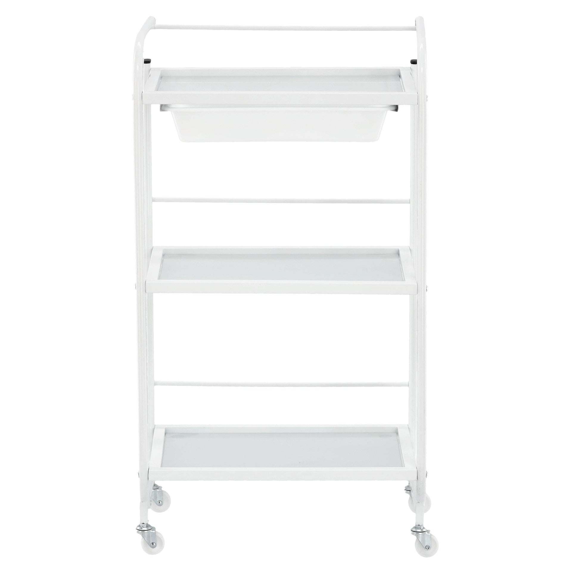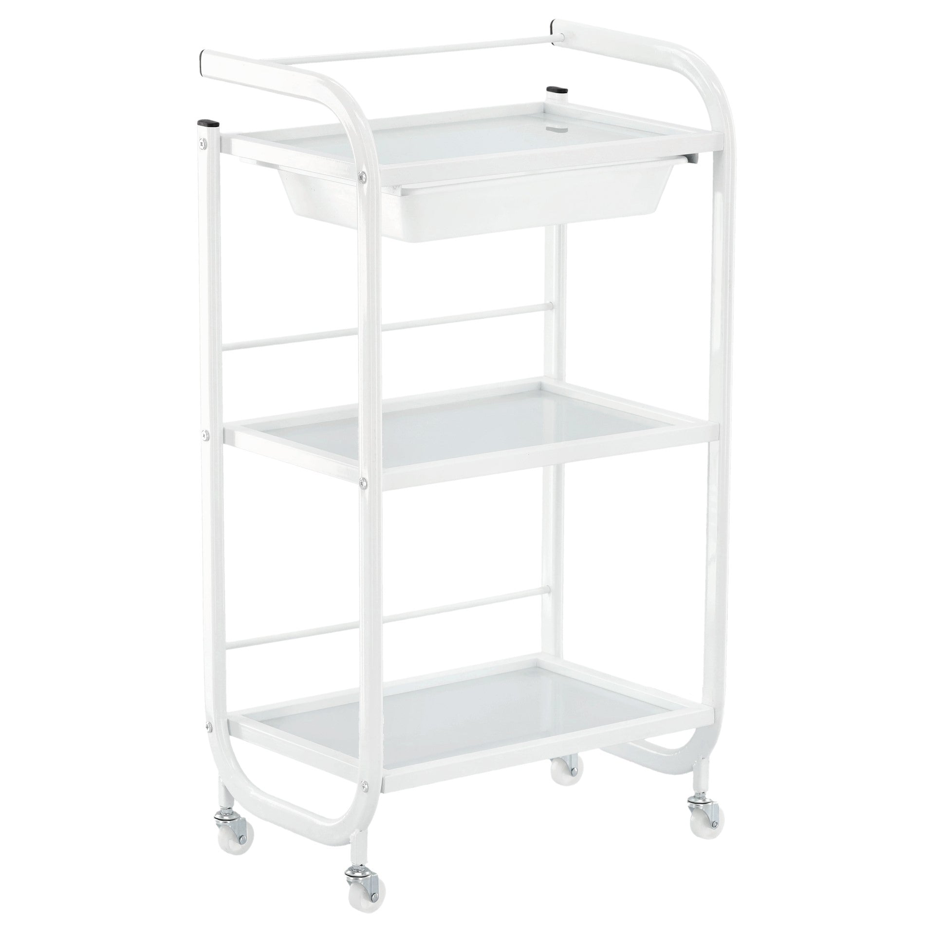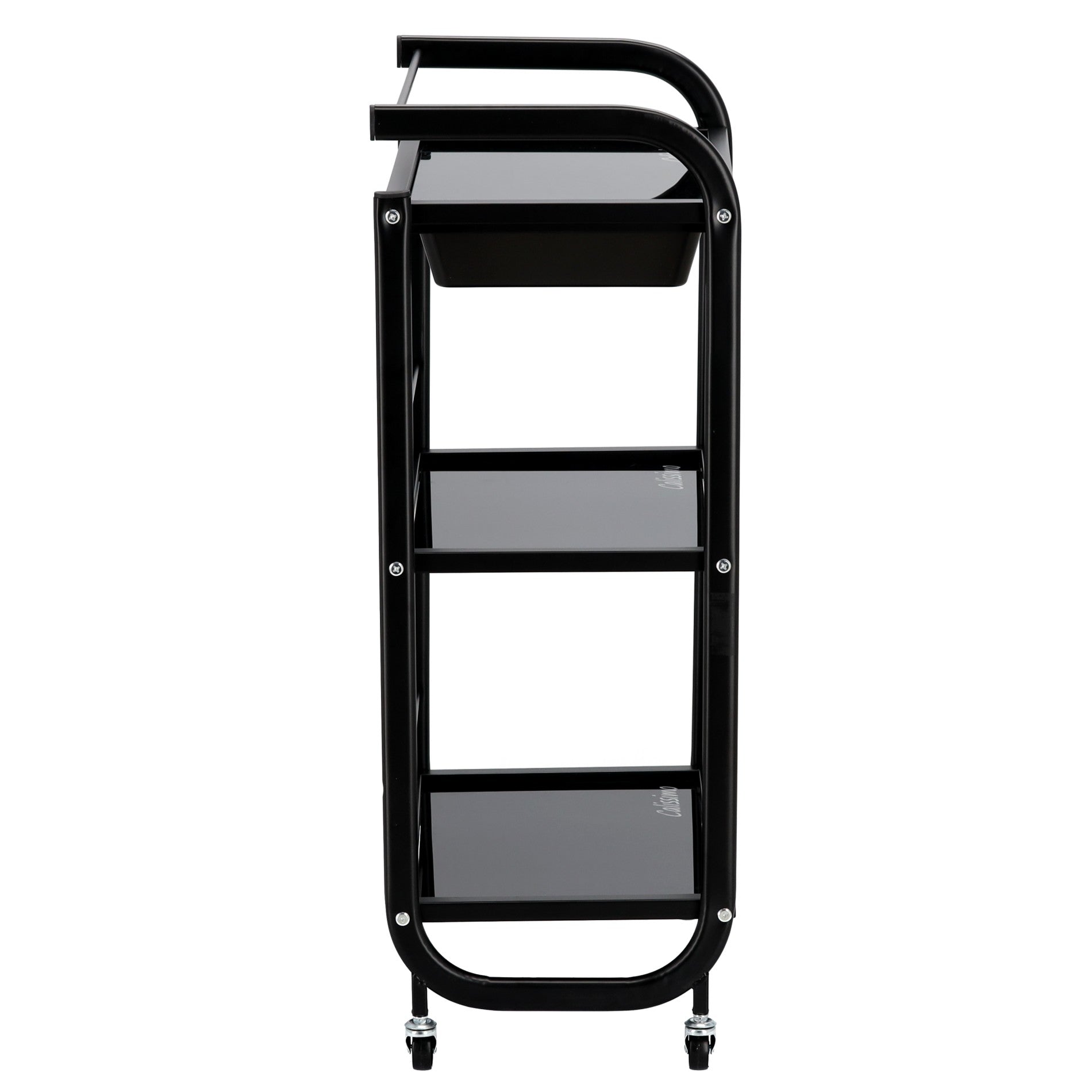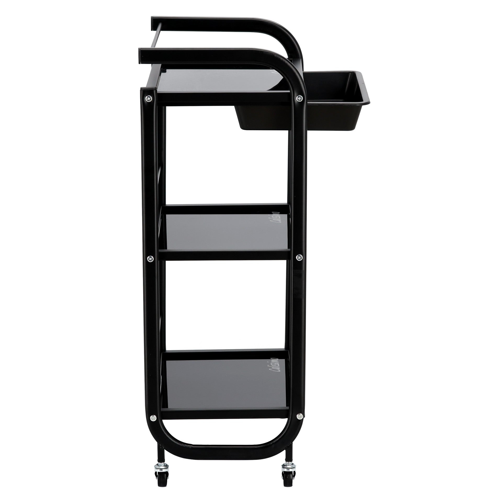 Structura sa solidă, cu cadru din oțel acoperit cu pulbere, asigură durabilitate și stabilitate în utilizare zilnică. Cele trei rafturi din sticlă, montate pe ventuze, adaugă un plus de finețe vizuală, păstrând totodată ucenicul aerisit și ușor de curățat. Finisajul mat contribuie la păstrarea unei igiene impecabile în spațiile profesionale.