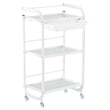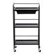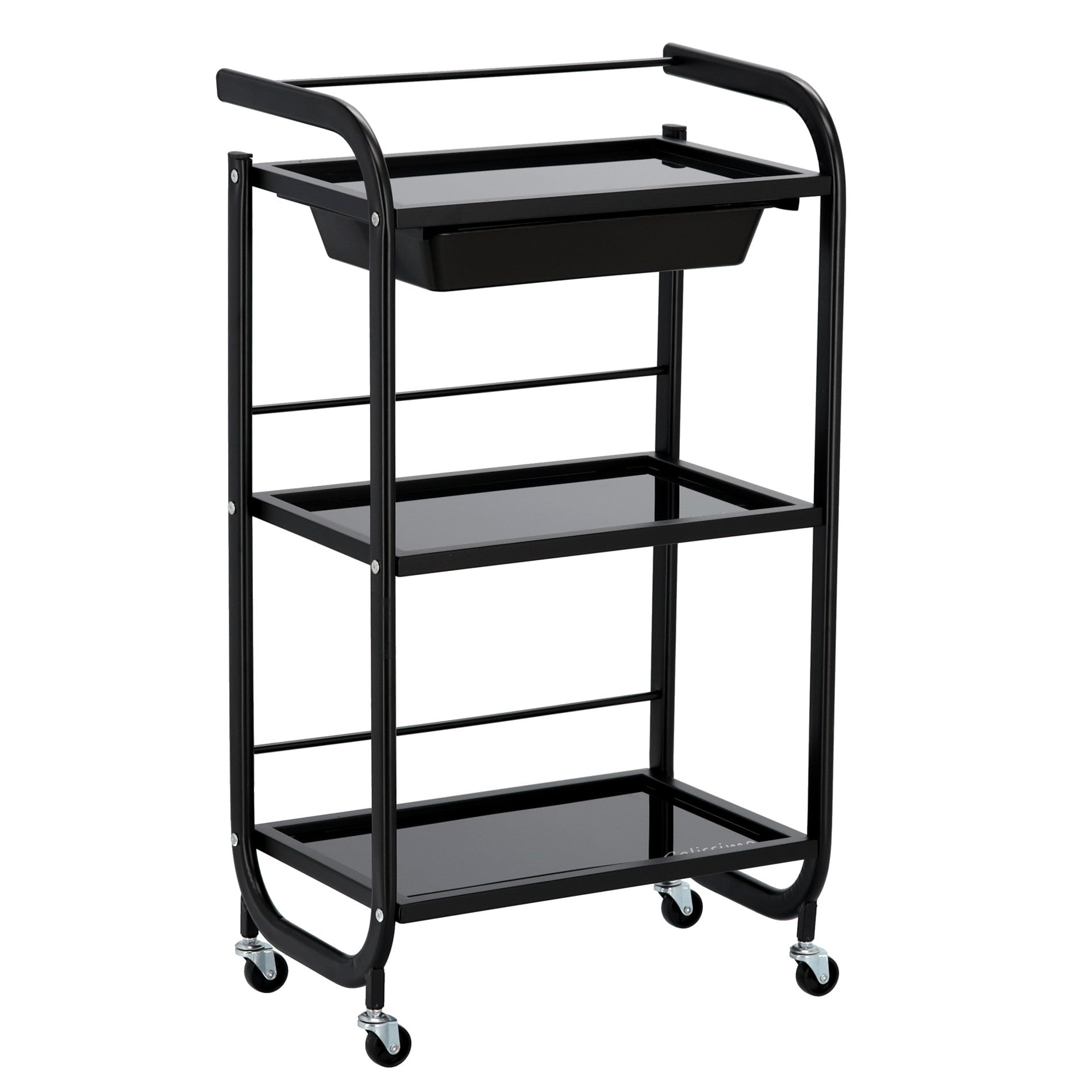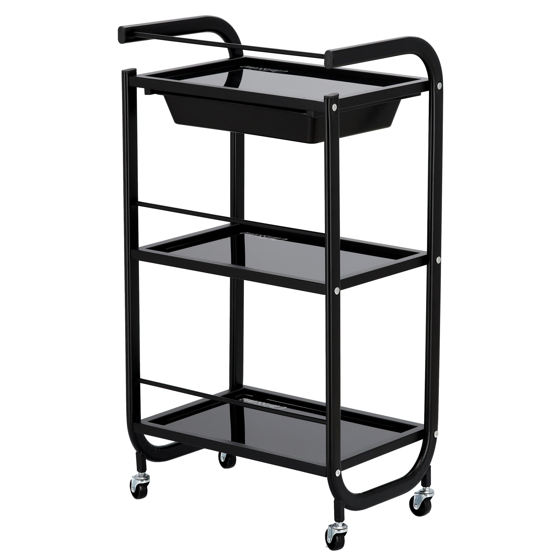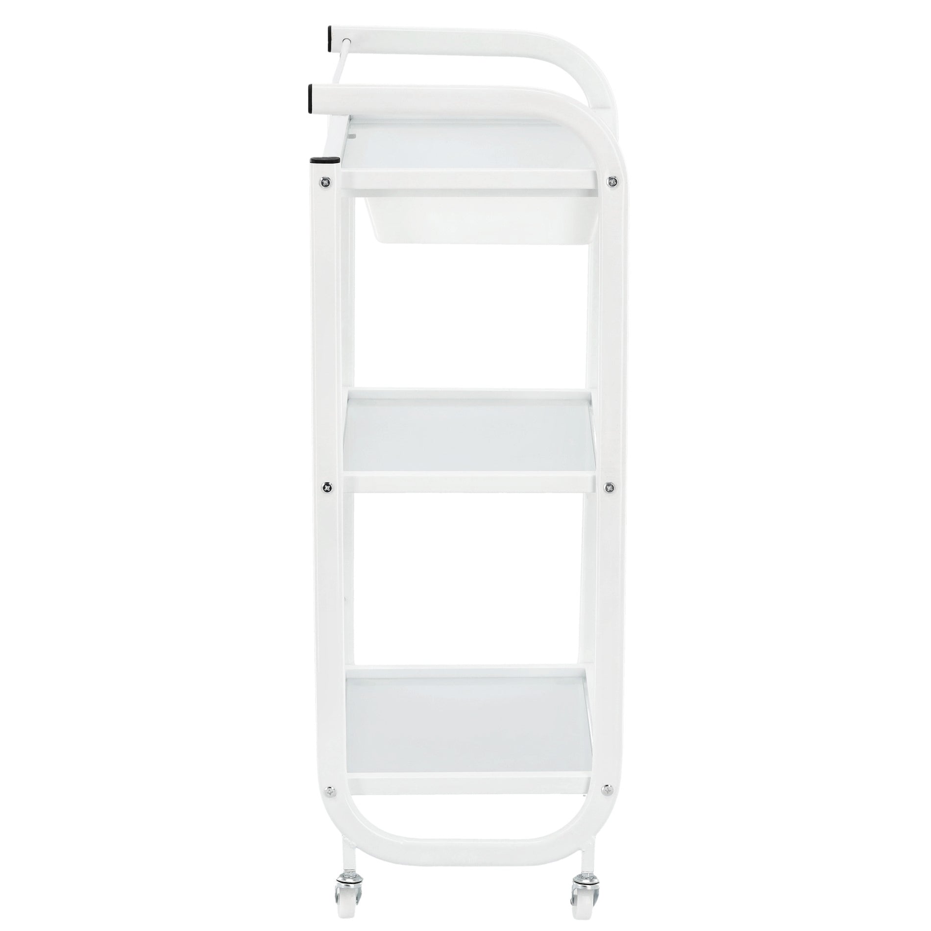 Structura sa solidă, cu cadru din oțel acoperit cu pulbere, asigură durabilitate și stabilitate în utilizare zilnică. Cele trei rafturi din sticlă, montate pe ventuze, adaugă un plus de finețe vizuală, păstrând totodată ucenicul aerisit și ușor de curățat. Finisajul mat contribuie la păstrarea unei igiene impecabile în spațiile profesionale.