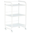 Fabricat dintr-o combinație de oțel și lemn de înaltă calitate, este rezistent și robust, garantând o utilizare îndelungată. Rafturile bine structurate și mobilitatea oferită de roți îl fac o soluție practică și funcțională pentru saloane, farmacii, bucătării sau alte spații.